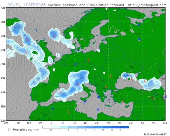 “Погодьтеся, що це незвично в місцях, які, зазвичай, найтепліші! Не забуваємо, що в холодку і в нічні години вже не липень – прохолодно. Отже! Завтра найпрохолоднішими очікуються південь України та Закарпаття. Дощі пройдуть у середу у південній частині України. Причина – маленький, але вредний циклончик над Чорним морем – карта внизу. До дощів приєднається у південній частині ще й сильний східний вітер”, – написала вона.