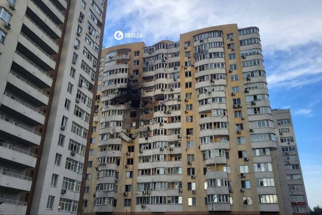 Голова Солом’янської районної в місті Києві держадміністрації Сергій Мовенко близько 03:00 опублікував відео з місця подій і повідомив про влучання в житловий будинок у Солом’янському районі.