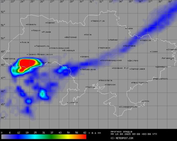 Крім того, атмосферний фронт принесе короткочасні дощі на Закарпаття, Прикарпаття, центральні області та Харківщину. Опади ймовірні переважно вночі та вранці, вдень фронт послабне і поступово розсіється.