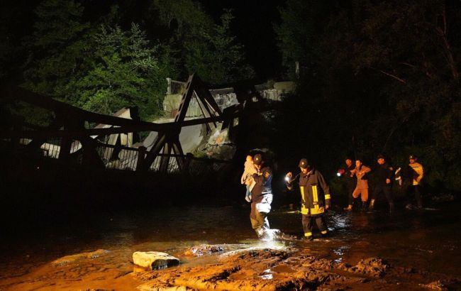 На Закарпатті обвалився міст: надзвичайники врятували 2-річного хлопчика (фото)