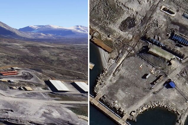 На супутникових знімках видно, який вигляд три ряди резервуарів для зберігання палива поблизу портової споруди мали раніше та в серпні 2025 року. У них росіяни зберігають бензин для транспортних засобів, що використовуються на ядерному випробувальному полігоні.