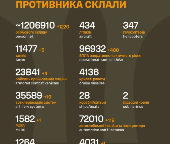 особового складу – близько 1 206 910 (+1 220) осіб;