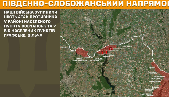 На Південно-Слобожанському напрямку наші війська зупинили шість атак противника у районі населеного пункту Вовчанськ та у бік населених пунктів Графське, Вільча.
