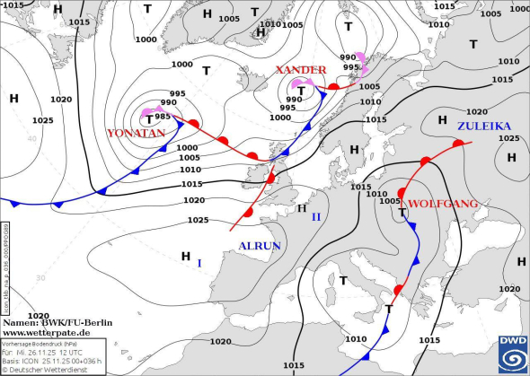“Характерна ознака завтрашнього дня – сильний вітер південного походження. Дощі ймовірні лише на крайньому заході України, бо ми належатимемо теплому сектору циклону Wolfgang, який торкатиметься своїми атмосферними фронтами лише заходу”, – написала вона, показавши карту.